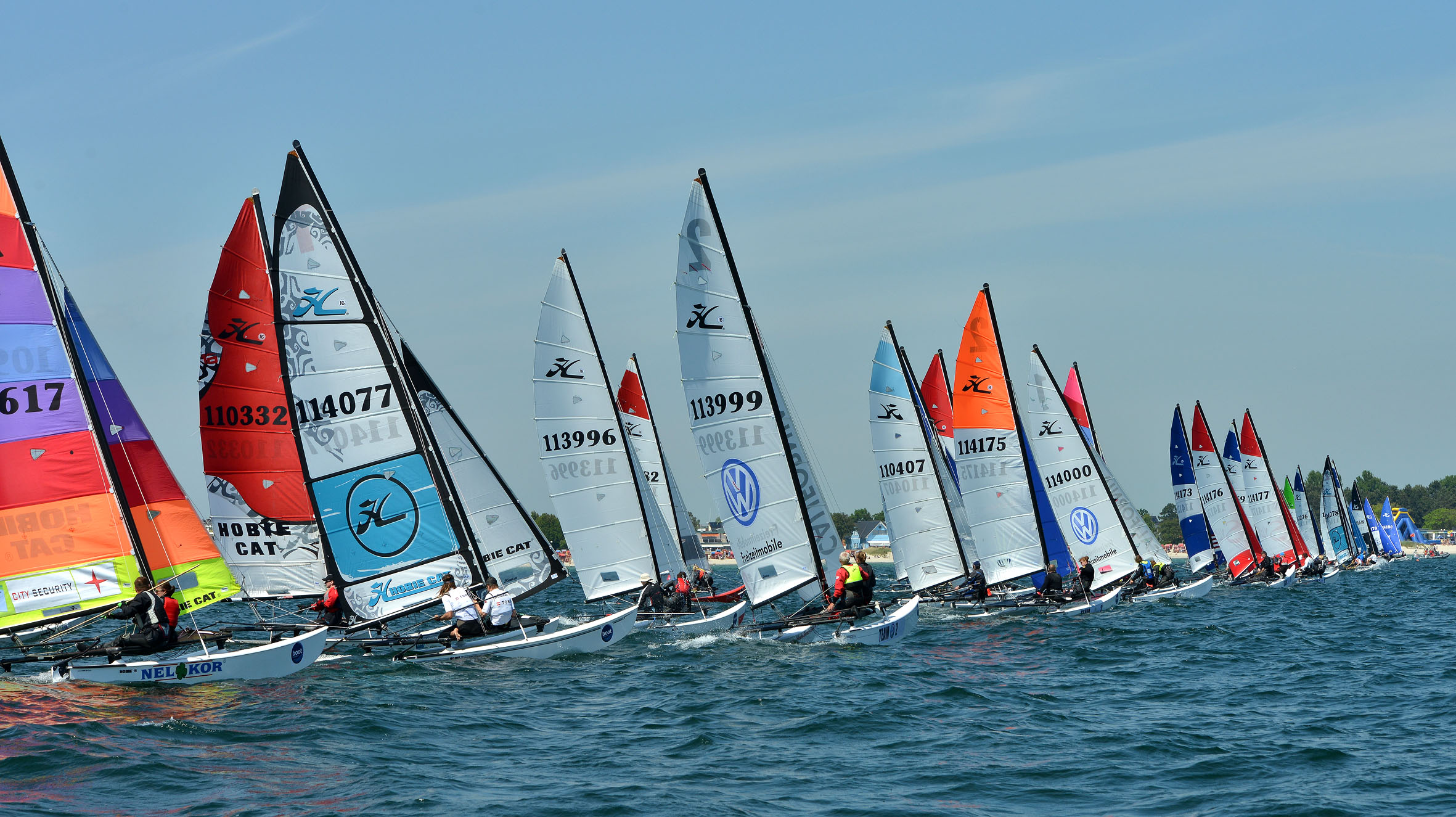 Das Warten hat ein Ende - die farbenfrohen Hobie Cats kommen an Pfingsten nach Grömitz